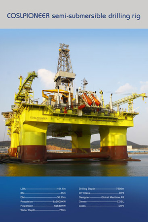 2012年初,煙臺中集來福士建造的深水半潛式鉆井平臺“油服先鋒”號(COSLPIONEER)在挪威北海靠近Gullfaks南部區域為挪威國家石油公司(Statoil)鉆出石油,這是中國建造的深水半潛式鉆井平臺首次在國外成功鉆出石油。