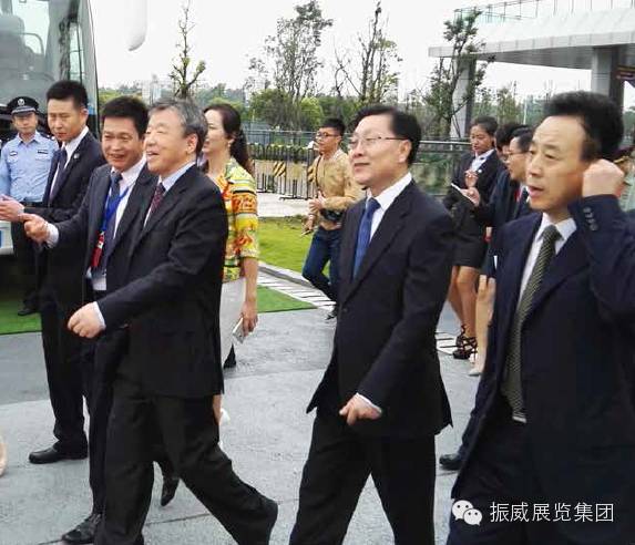 全國政協副主席盧展工、中共四川省委書記王東明、四川省省長魏宏在振威展覽股份董事長張學山陪同下參觀科 博會