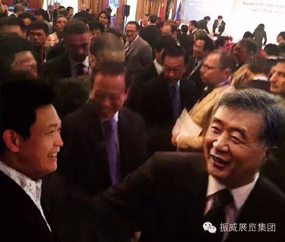 2015米蘭世博會中國國家館日活動期間,中國國務院副總理汪洋與振威展覽股份董事長張學山親切交談