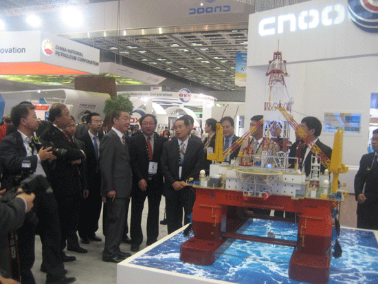 中海油展位上,海洋981平臺再度亮相。(下圖)
